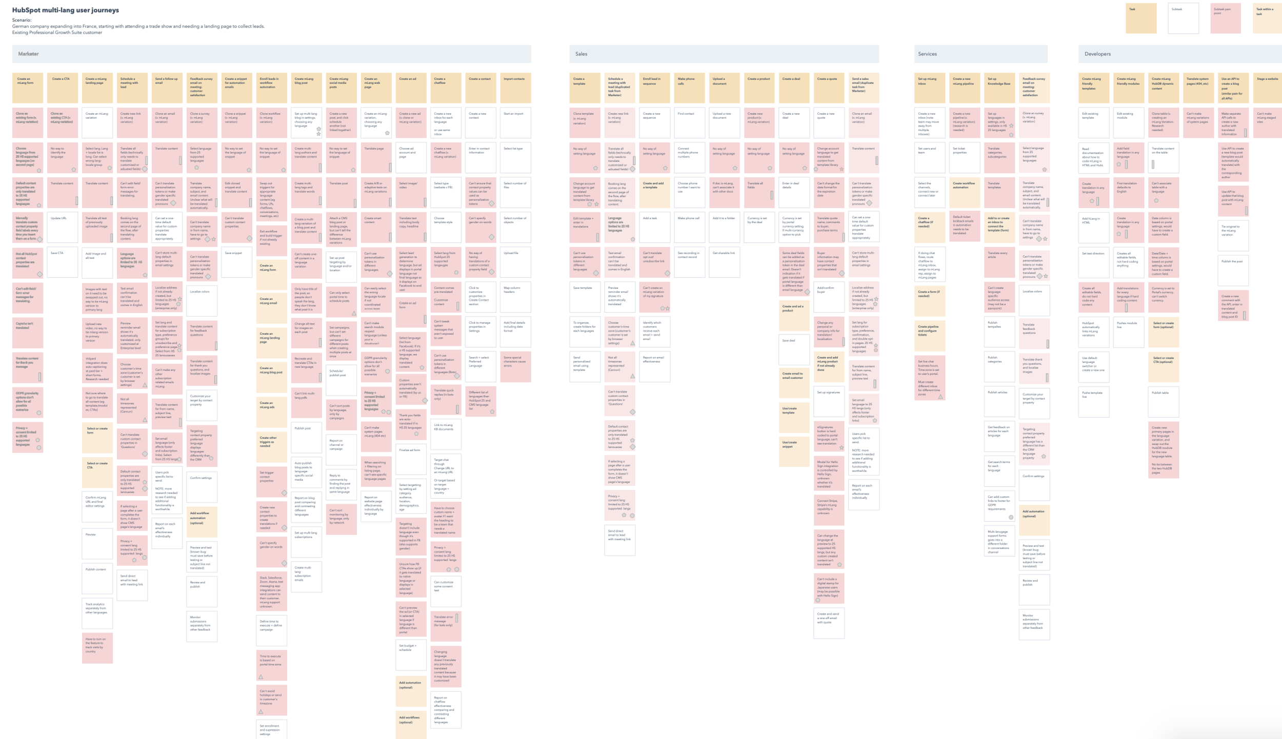 We mapped every task, action, and pain point across 4 personas and all HubSpot contention tools across 4 personas and 28 products.